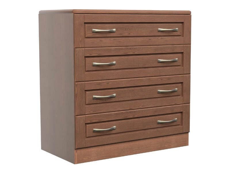 На выбор предлагаются актуальные цвета древесины, в том числе оттенки орех и груша. Купить изделия возможно в стандартной и индивидуальной комплектации. Под заказ изготавливаются комоды с другими параметрами по высоте, с дополнительным ящичком и автодоводчиками закрытия, что несущественно сказывается на цене.