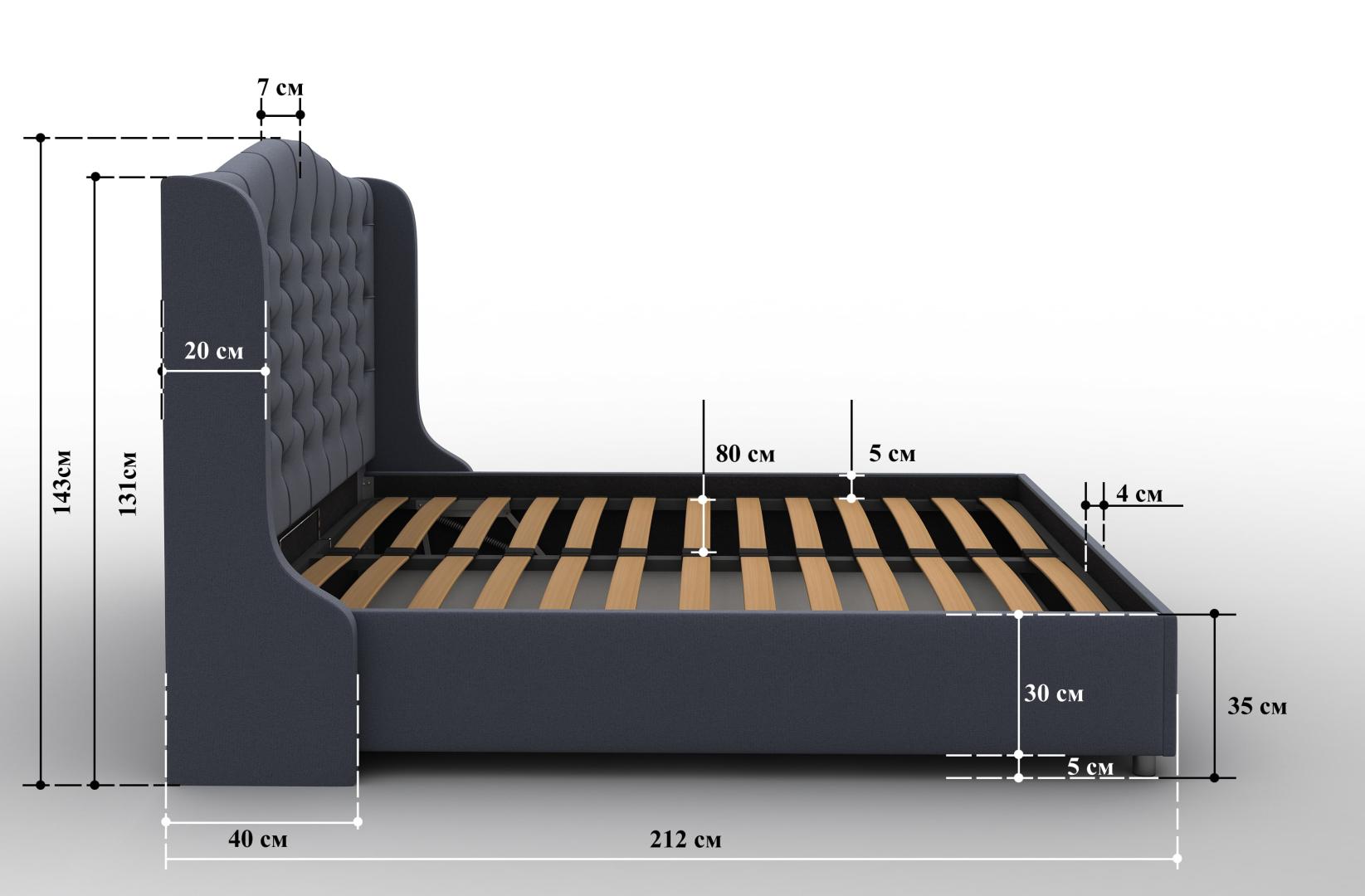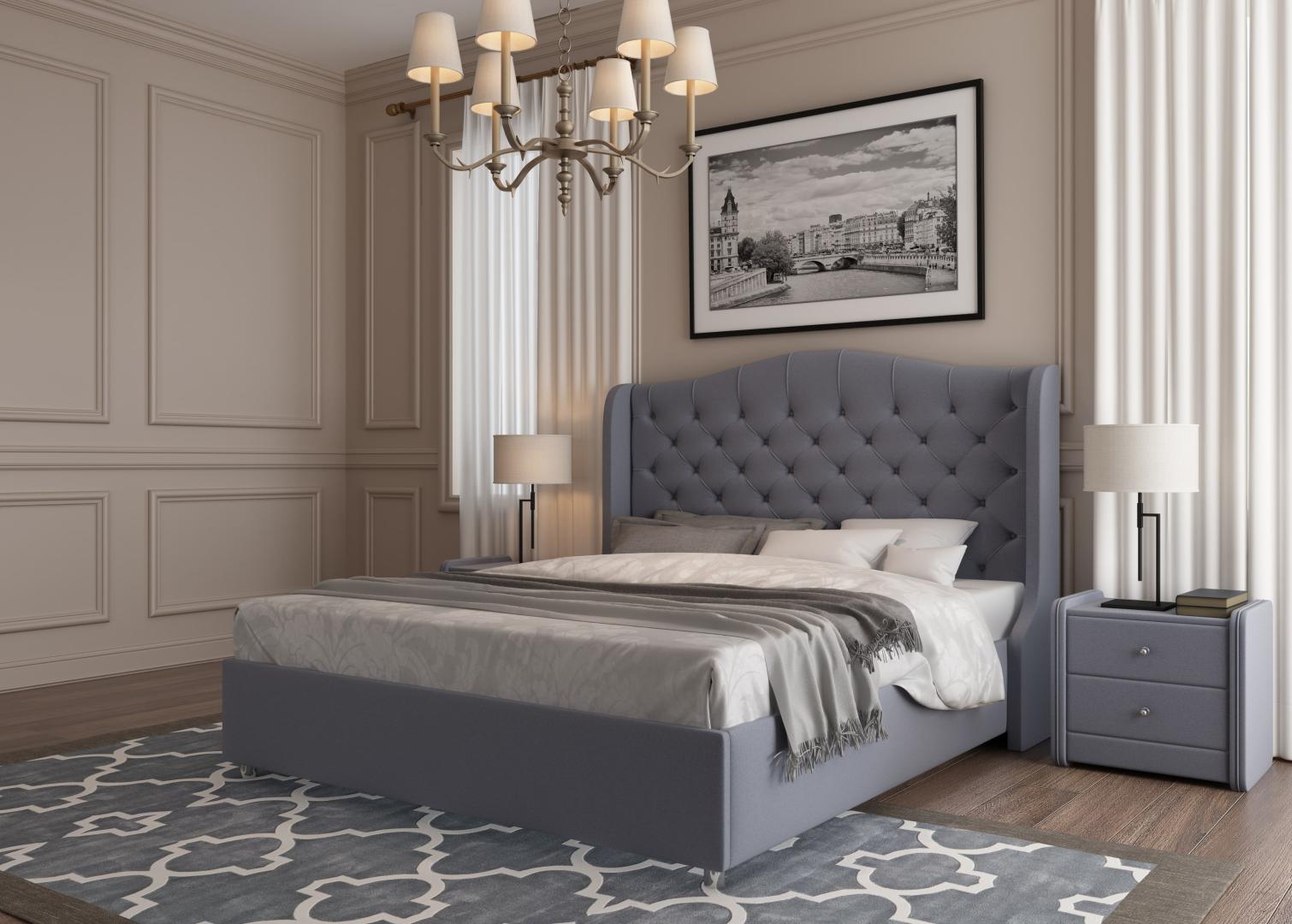 Модель Premier 5 отличает красивая фигурная спинка с каретной стяжкой. Изголовье мебели получило сложную фигурную форму и декорирование пуговицами в тон обивки. Такая кровать станет центром притяжения в любой спальне. Мягкая реализация обивки позволяет по-настоящему ощутить удобство и комфорт. Материалы: В качестве обивочной ткани используется велюр, экокожа и рогожка. При заказе вы сможете выбрать материал и его цвет. Палитра оттенков для каждого варианта обивки своя и весьма широка. Каждая ткань имеет собственную уникальную текстуру. Так велюр очень похож на замшевый слой, экокожа приближена по качествам к коже, а рогожка представляет собой фактурную ткань с красивым переплетением нитей и текстурой. Если вам важна мягкость, то стоит выбирать велюр, если блеск и легкость чистки – экокожу, а если вам нужна прочность, то остановитесь на рогожке. В качестве основы каркаса выбран ДСП в толщине 16 мм. Износостойки и безопасный материал уже на протяжении нескольких десятилетий используется в мебельной промышленности. Основание: В кровати установлено металлическое основание с деревянными ламелями. Рейки умеют подстраиваться под нагрузку и работу матраса с ортопедическим эффектом. Механизм обеспечивает долгую и надёжную службу спальной принадлежности. Основание может быть снабжено подъёмным механизмом. Таким образом внутри кровати организовывается большой бокс для хранения вещей и спальный принадлежностей.