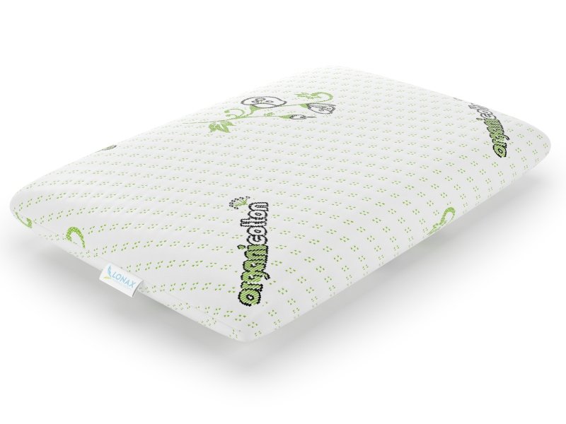 Оптимальная высота 12 см обеспечивает идеальное положение шейных позвонков во время сна. Дополнительный комфорт создается за счет воздухопроницаемых свойств наполнителя. Человеку комфортно в любое время года, так как сохраняется естественный температурно-тепловой режим. Чехол выполнен из приятного на ощупь полиэстер, органический хлопок.